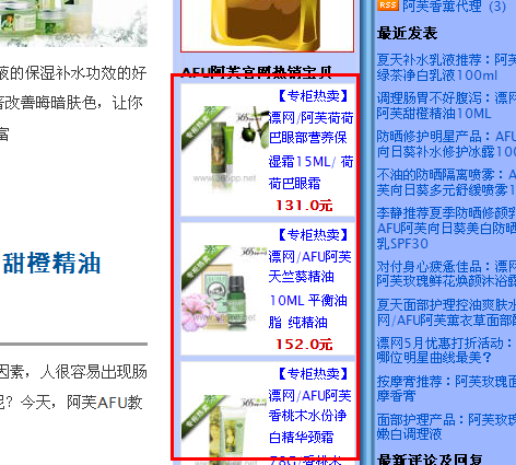 案例網站:http://www.afuhuli.com/ 阿芙香薰淘寶客博客
