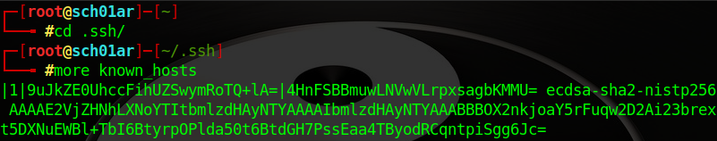 known hosts文件在/root/目錄下,輸入命令 ls .然后連按兩下tab鍵查看該目錄下的隱藏文件