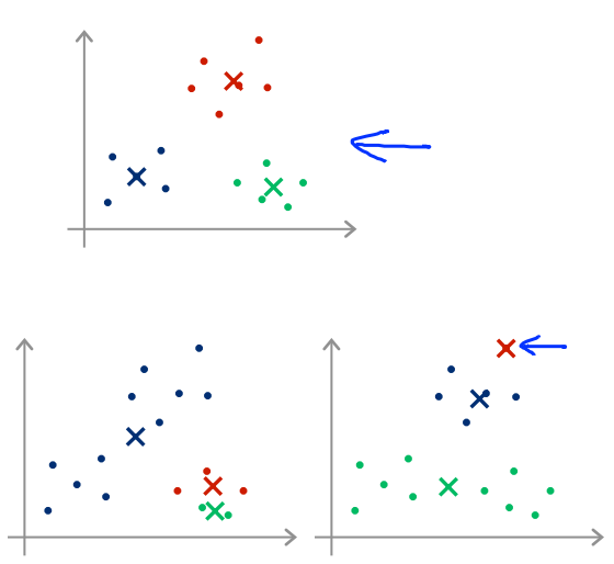隨機取簇中心若是不幸,會出現局部最優的情況;想要打破這種情況,需要多次取值計算來解決這種情況。