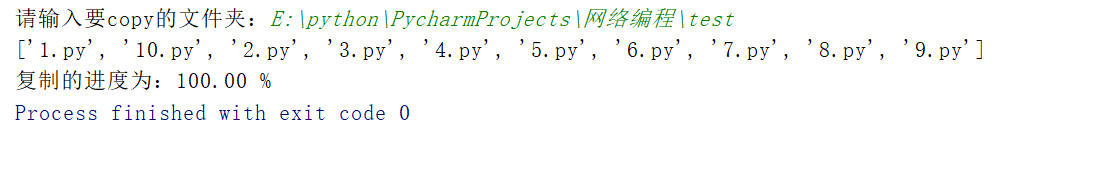 import osimport multiprocessingdef copy_file(q,file_name, old_folder_name, new_folder_name): """完成文件的復制""" old_f = open(old_folder_name+"/"+file_name, "rb") content = old_f.read() old_f.close() new_f = open(new_folder_name+"/"+file_name, "wb") new_f.write(content) new_f.close() # print("從%s--->到%s 復制文件%s成功!" % (old_folder_name, new_folder_name, file_name)) q.put(file_name)def main(): # 1.獲取用戶要copy的文件夾名稱 old_folder_name = input("請輸入要copy的文件夾:") # 2.創建一個新的文件夾 try: new_folder_name = old_folder_name + "復件" os.mkdir(new_folder_name) except: pass # 3.獲取所有待copy的文件名稱 listdir() file_names = os.listdir(old_folder_name) print(file_names) # 4.創建進程池 po = multiprocessing.Pool(2) # 5.創建一個隊列 q = multiprocessing.Manager().Queue() # 6.向進程池中添加copy文件的任務 for file_name in file_names: po.apply_async(copy_file, args=(q,file_name, old_folder_name, new_folder_name)) po.close() # po.join() all_file_num = len(file_names) # 統計所有的文件個數 copy_ok_num = 0 while True: file_name = q.get() # print("已經完成copy :%s" % file_name) copy_ok_num += 1 print("/r復制的進度為:%.2f %%" % (copy_ok_num*100/all_file_num),end='') if copy_ok_num >= all_file_num: breakif __name__ == '__main__': main()