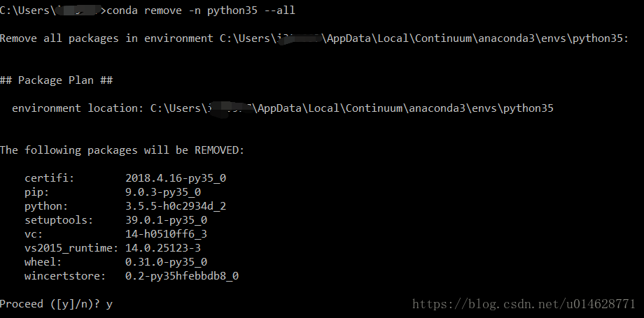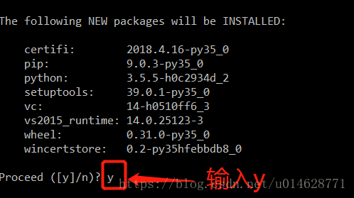 conda create --name python35 python=3.5 代表創建一個python3.5的環境,我們把它命名為python35