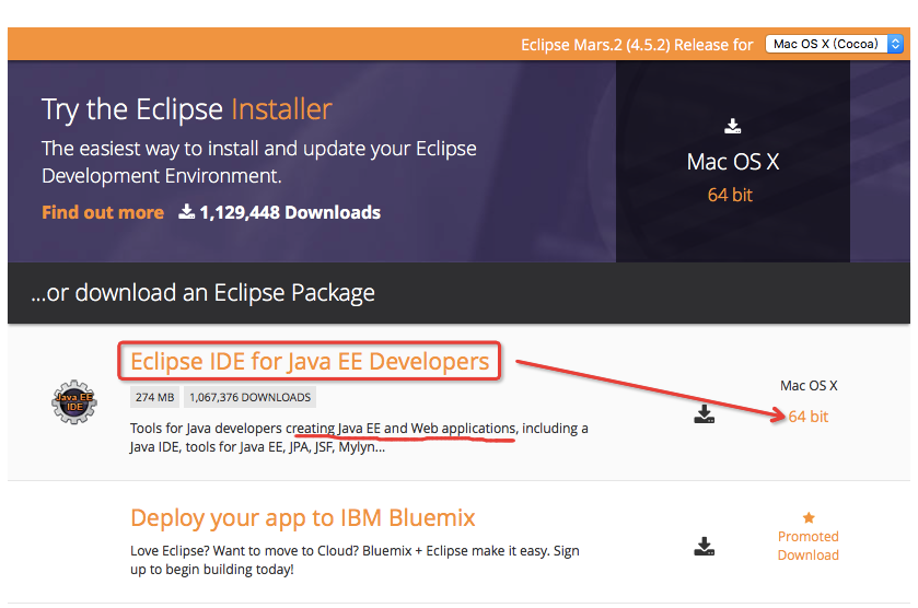 3.這里列出了多種下載安裝包,根據你的需求來選擇。由于我們需要開發基于web的jsp程序,所以要選擇Java EE的這個: