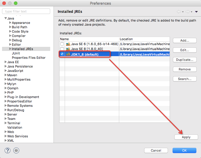 12.勾選這個新增的JRE,點擊右下角的Apply按鈕,應用該配置: