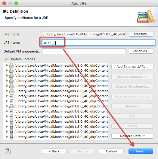 11.輸入JRE的名稱(如: JRE1_8),點擊“Finish”按鈕: