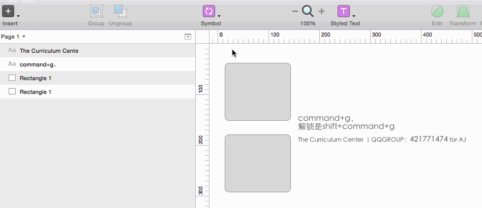 3.組合和接觸組合,這個不用多少了市面上多數的軟件都是command+g,解鎖是shift+command+g