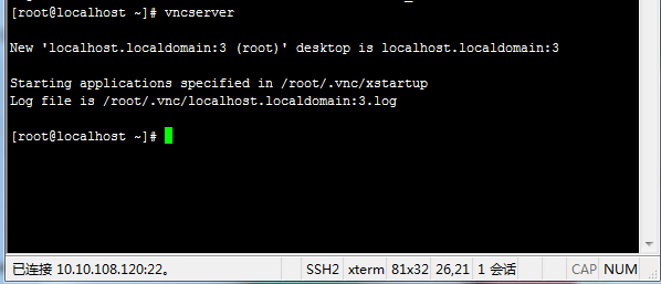 后,會在當前用戶目錄下生成.vnc目錄,當前用戶是root,則會有/root/.vnc/目錄,運行結果如下所示