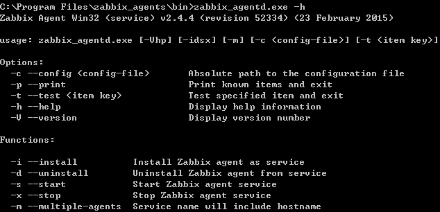 2、查看zabbix_agentd.exe -h程序的幫助,其中 -i是安裝,-c是添加程序的配置文件