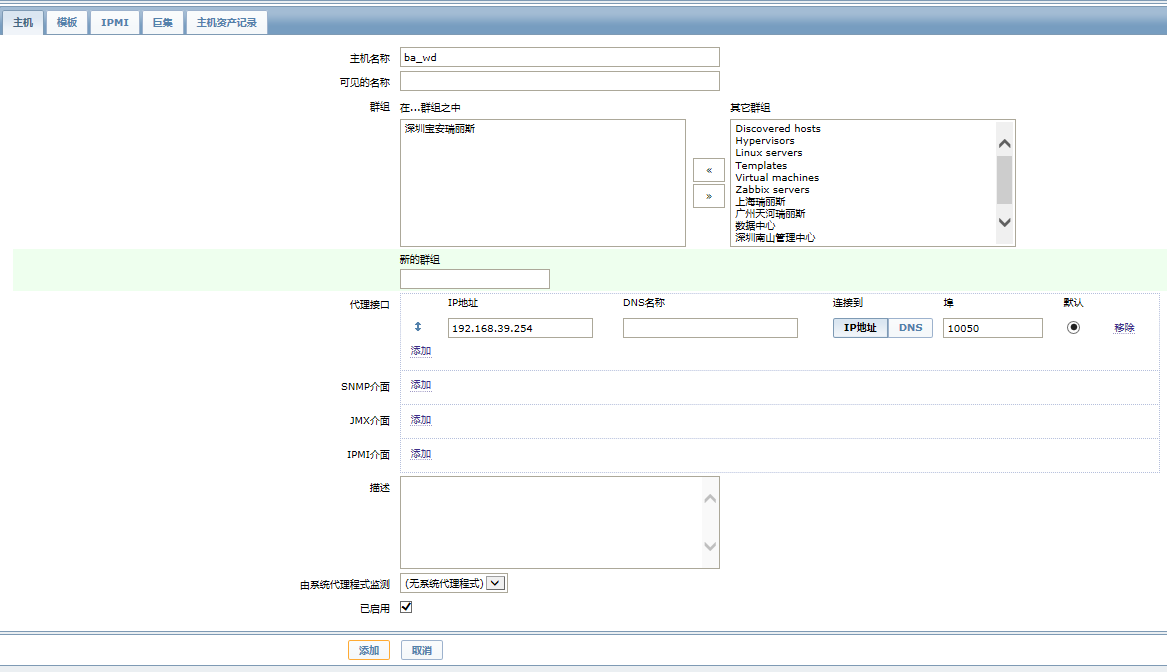 LogFile=c:/Program Files/zabbix_agents/logs/zabbix_agentd.log #日志文件的存放路徑Server=192.168.6.124 #被動提交服務(wù)端的IP地址ServerActive=192.168.6.124 #主動提交服務(wù)端的IP地址 Hostname=ba_wd #zabbix_server添加主機(jī)時設(shè)置的主機(jī)名,需要對應(yīng)起來,否則無法主動提交數(shù)據(jù)Include=c:/Program Files/zabbix_agents/conf.d/*.conf #放在此目錄中的文件,重啟服務(wù)器自動加載配置文件