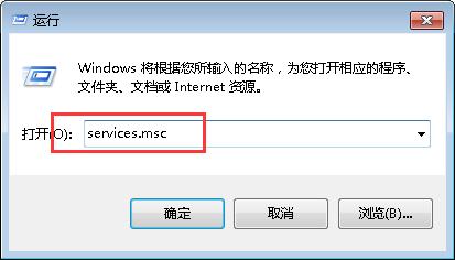 第2步:在打開的運行窗口中輸入“services.msc”并確定,即可打開電腦系統服務程序。