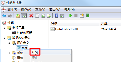 4、開始啟動數據采集,選擇用戶定義下的數據收集器集>右鍵屬性>開始,此時,輸出有地址了,