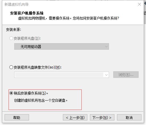 3.選擇稍后安裝操作系統(tǒng)。