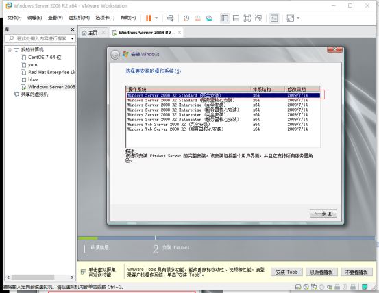 4.選擇客戶機操作系統(tǒng)以及版本,Windows Server 2008 R2 x64,如圖所示。