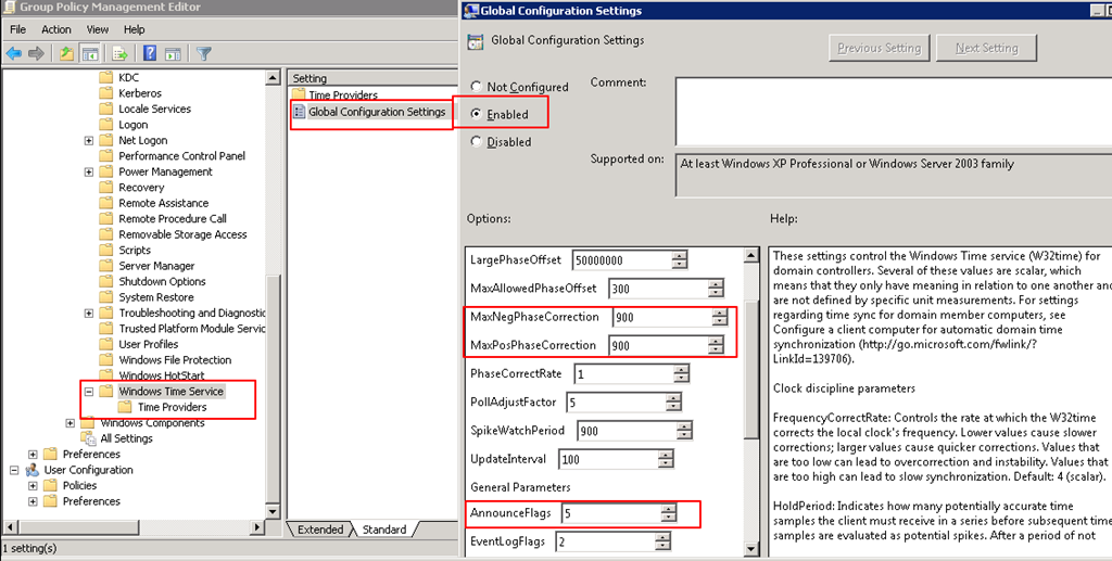 AnnounceFlags設為5表示以外部時間源為準進行同步,10表示以本機BIOS時間為準。