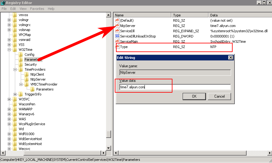 轉到Parameters分支下修改ntpserver的值為外部時間源域名或ip地址和Type值為ntp。