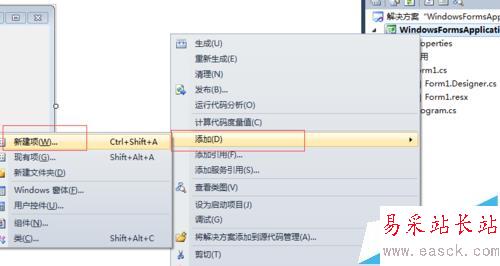 3、一個(gè)桌面應(yīng)用程序中往往會(huì)有多個(gè)窗體。我們可以右鍵點(diǎn)擊項(xiàng)目名稱,在“添加”選項(xiàng)中,選擇“新建項(xiàng)”來(lái)添加窗體。注意不要選錯(cuò),否則會(huì)進(jìn)行其它操作。