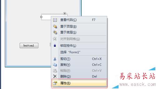 7、右鍵點(diǎn)擊窗體中的控件,在上下文菜單中選擇“屬性”,右側(cè)就會(huì)出現(xiàn)這個(gè)控件的屬性設(shè)置欄。在屬性設(shè)置欄中,可以設(shè)置控件的各種屬性。有顯示文本、顏色等。