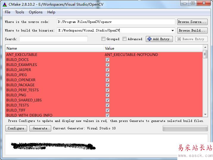 此過程用于將安裝OpenCV后得到的源碼編譯為相應版本的VS工程。詳細步驟如下。