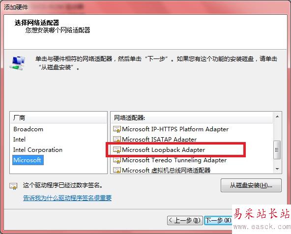 然后再選擇多個下一步選項,選擇添加網絡適配器,再打開的窗口中選擇按照下圖的情況選擇: