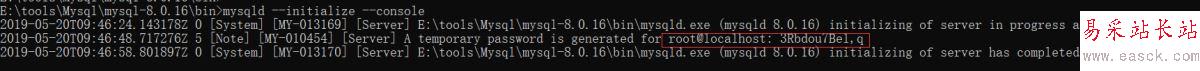 3,初始化,并將生成的用戶密碼記下來(root的隨機密碼) mysqld --initialize --console