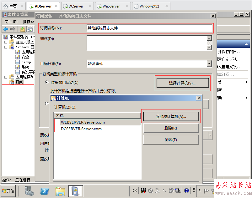 11.右鍵創(chuàng)建訂閱,輸入訂閱名稱,然后選擇計算機添加DCServer服務(wù)器和WebServer服務(wù)器然后確定。