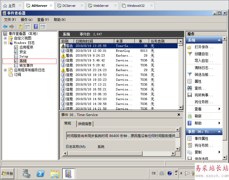 1.在ADServer服務(wù)器上面點擊開始菜單,選擇管理工具,打開事件查看器。