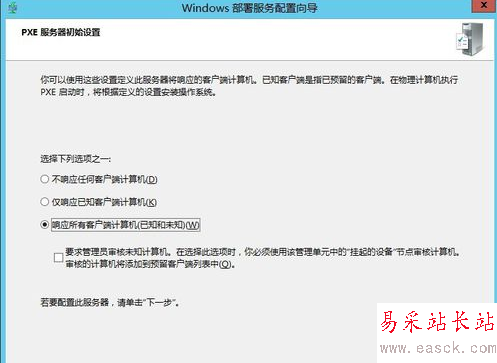 1. 選擇【獨立服務】以及【響應所有客戶端計算機】完成Windows部署服務的配置。