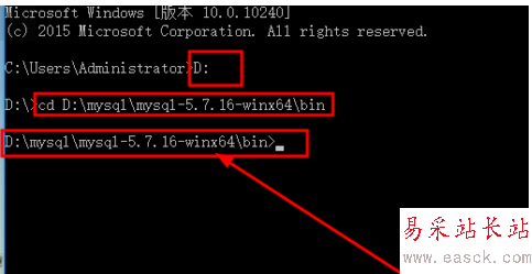 打開DOS界面后 通過輸入命令進入 安裝目錄下的bin文件夾 如圖所示
