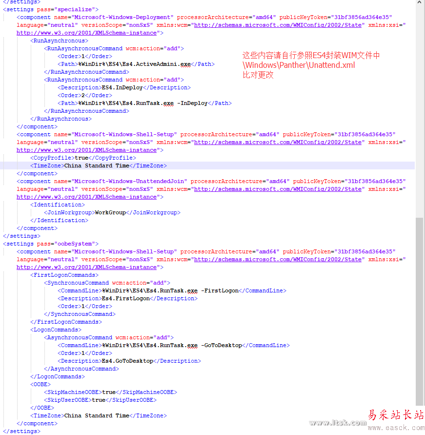 可直接復制 <settings pass="specialize">~~~~~~~~</settings> 這中間的內容替換
