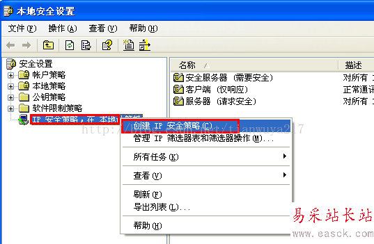 (2) 右鍵選擇“IP安全策略”——?jiǎng)?chuàng)建IP安全策略