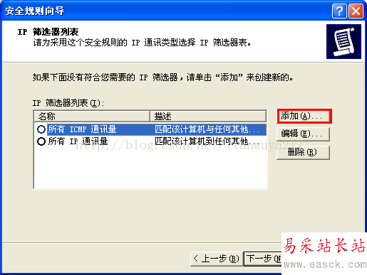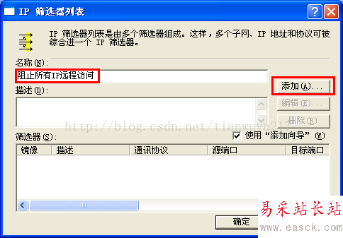 (2)添加新的篩選器:在ip篩選列表選擇——添加——輸入篩選名稱——添加