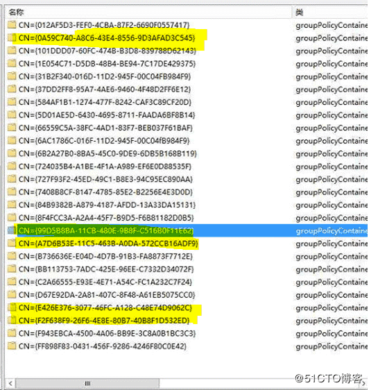 從報錯信息中我們可以確認問題是由于某條組策略調用 42B5FAAE-6536-11d2-AE5A-0000F87571E3導致的,所以我們需要找到相對應的GPO。從ADSI EDIT中對所有的組策略逐一檢查,根據屬性gPCUserExtensionNames來查找,發現有5條組策略都有這條extension