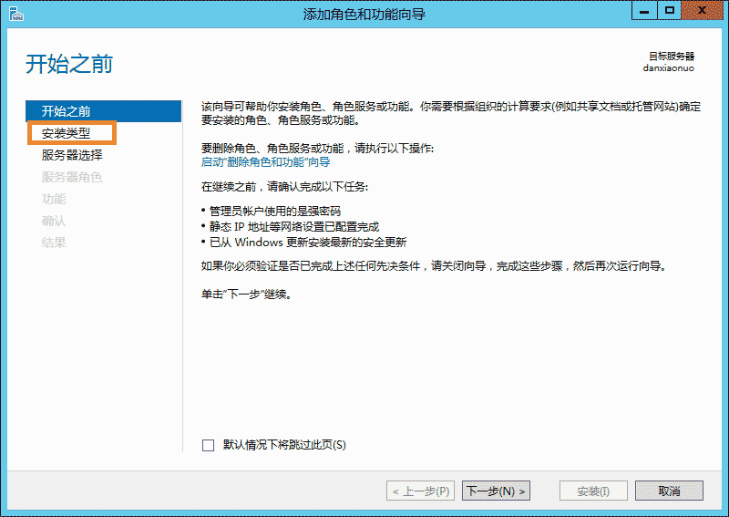 點擊左邊"安裝類型",然后單擊"基于角色或基于功能的安裝",再單擊"下一步(N)";