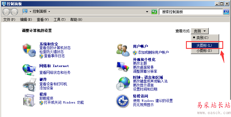 開始 > 控制面板 查看方式 改成 大圖標(biāo)
