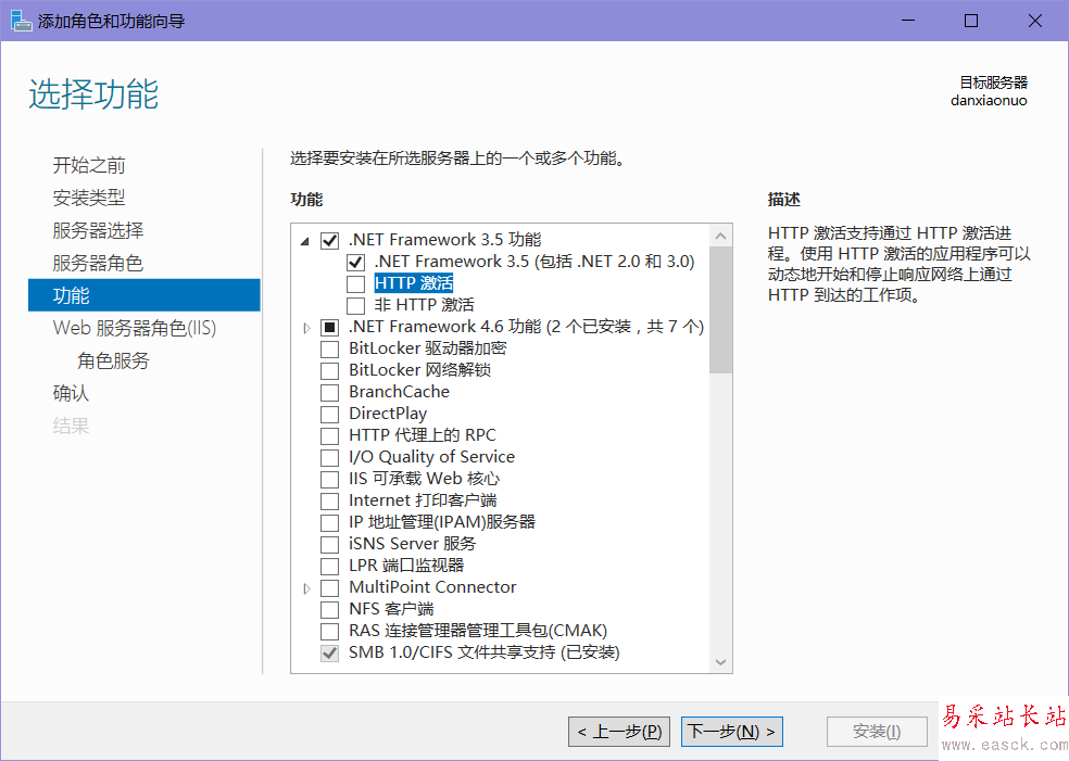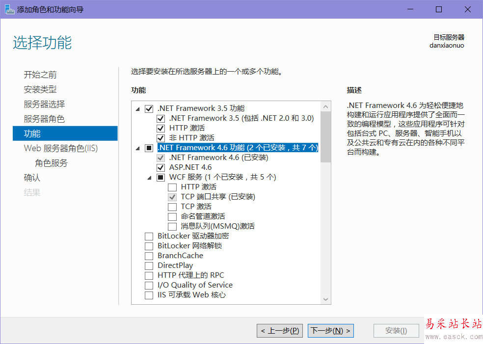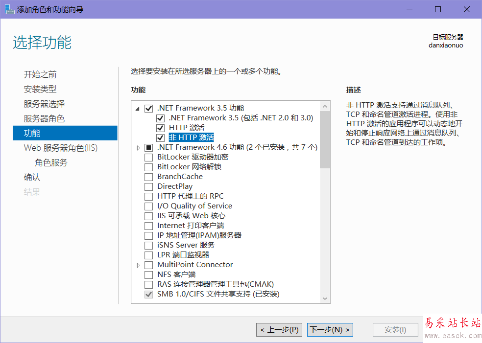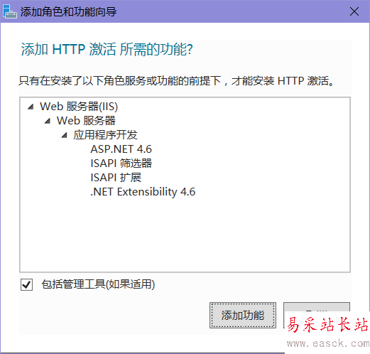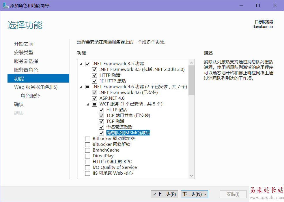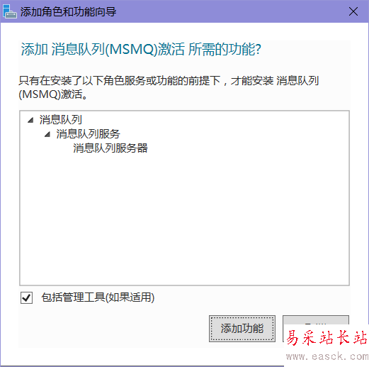選擇"消息隊列(MSMQ)激活"->單擊"增加功能"