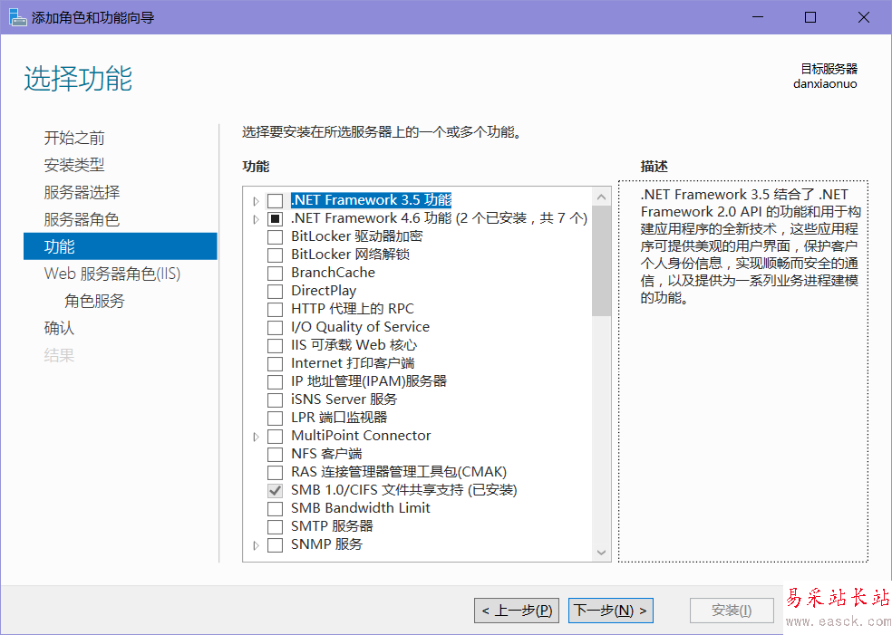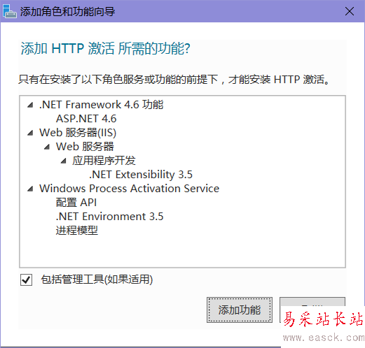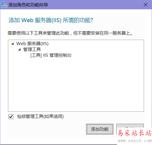 2、添加Web服務(wù)器(IIS)所需的功能->單擊"增加功能"