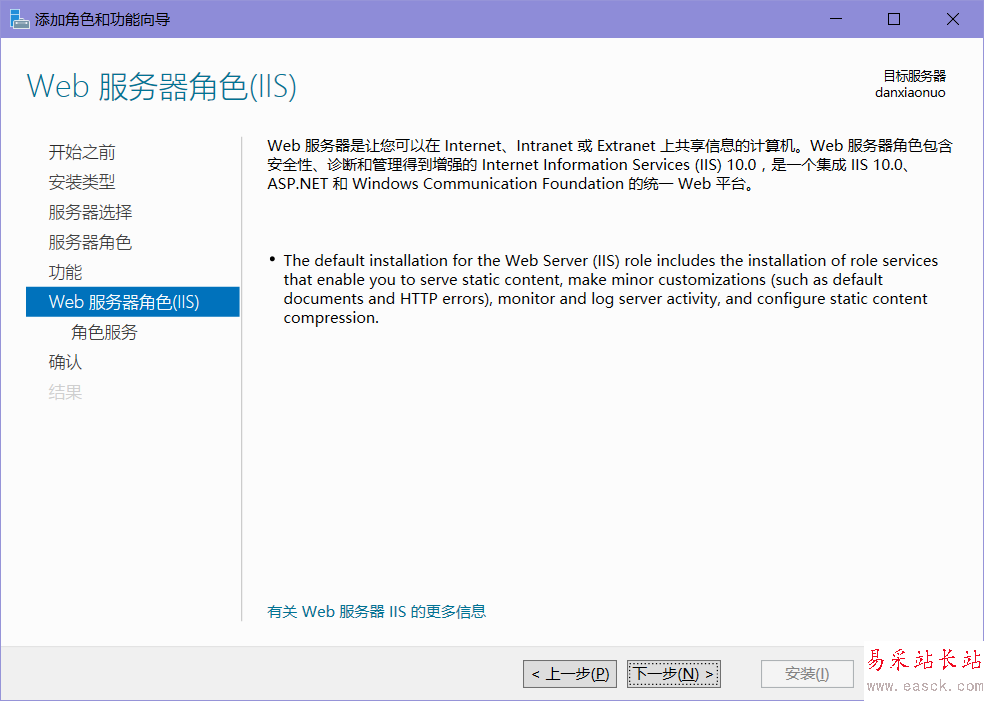 七、Web 服務(wù)器角色(IIS)->單擊"下一步"