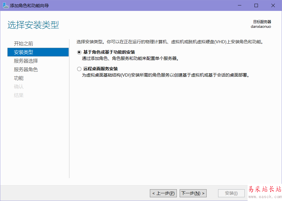 選擇"基于角色或基于功能的安裝"->單擊"下一步"