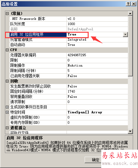 為 32bit 應(yīng)用程序的網(wǎng)站單獨(dú)創(chuàng)建一個(gè)應(yīng)用程序池,操作過(guò)程省略……;
