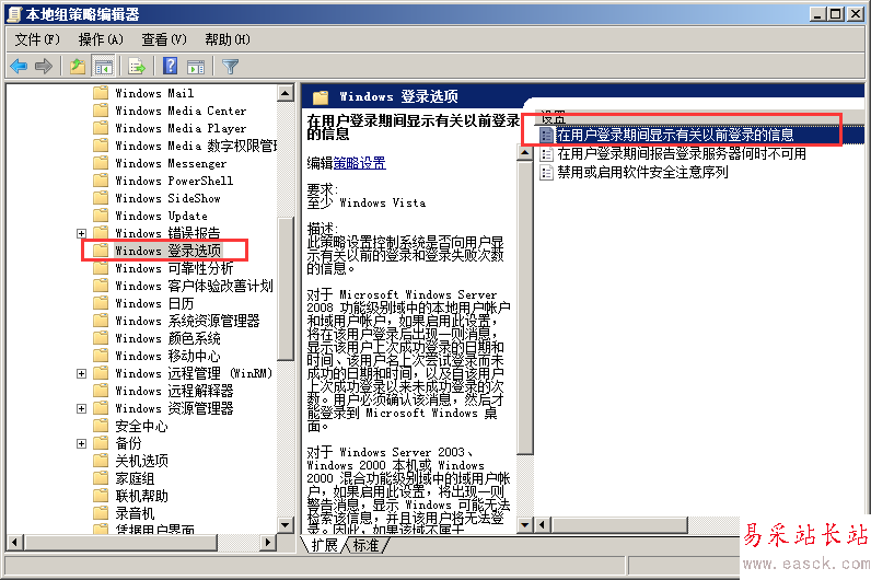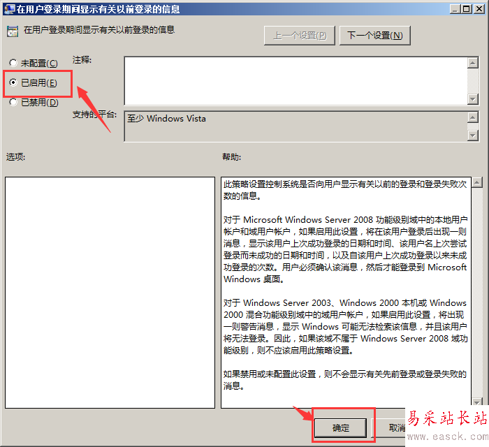 Server 2008服務器系統自帶的顯示以前登錄信息功能就被成功啟用了。