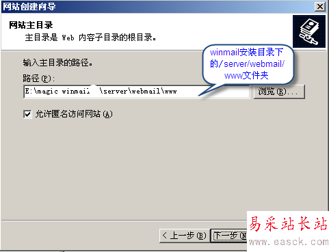 5. 選擇網站目錄地址,為winmail安裝目錄下的server/webmail/www/目錄: