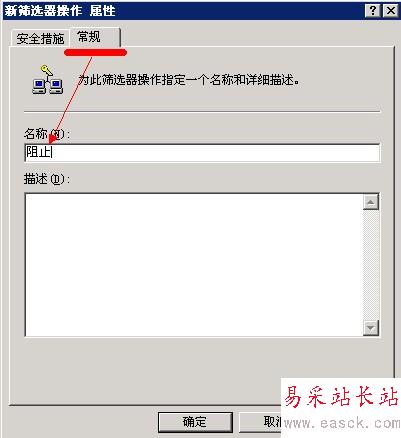 13. 我們要添加一個阻止,先做一個阻止所有端口、IP訪問進出的操作,然后再逐個放行,這個應該可以理解。我們先點常規,改個名“阻止”,然后確定。