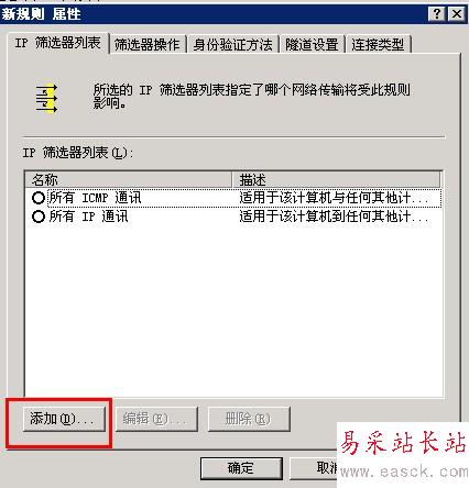 12. 點擊上圖中的確定,再回到“新規則屬性”下面,之前設置的是“IP篩選器列表”,現在設置“篩選器操作”