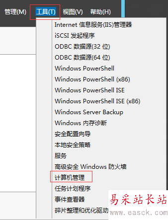 點擊右上角的“工具”,再選擇“計算機管理”