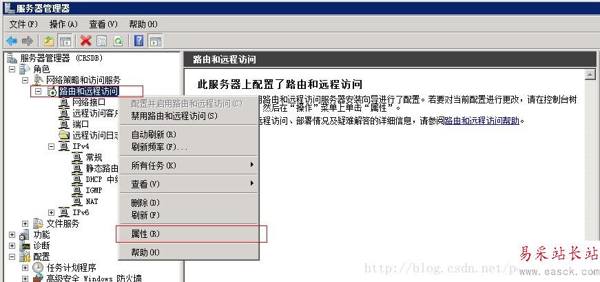 VPN配置的最后一步:右鍵點擊“路由和遠程訪問”——點擊“屬性”