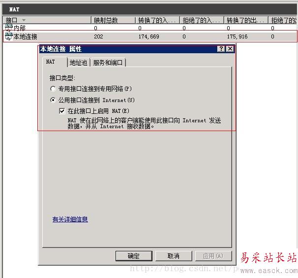 然后把“內部”接口和“本地接口”添加上,并“右鍵”——”屬性“如下設置: