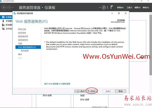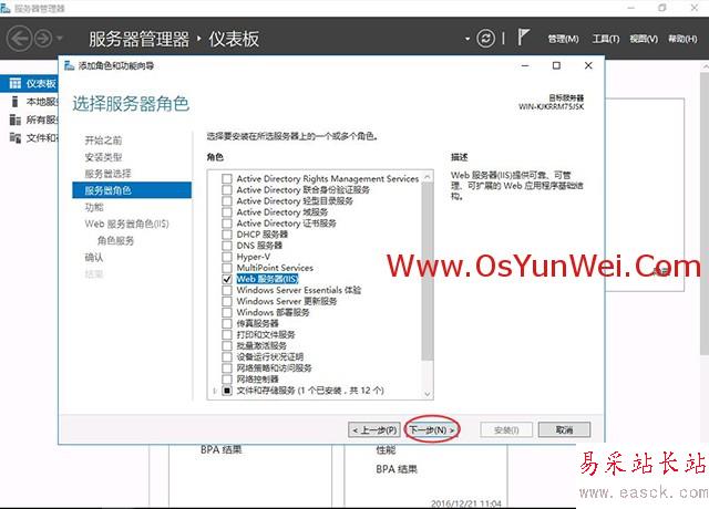 選擇:Web服務器(IIS)