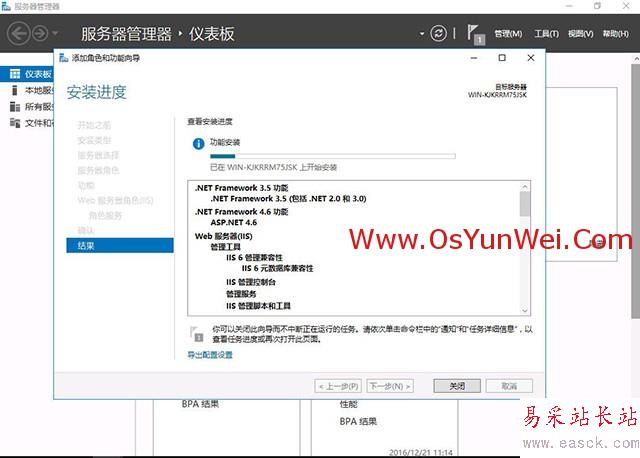 可以看到角色和服務器組中已經有了IIS