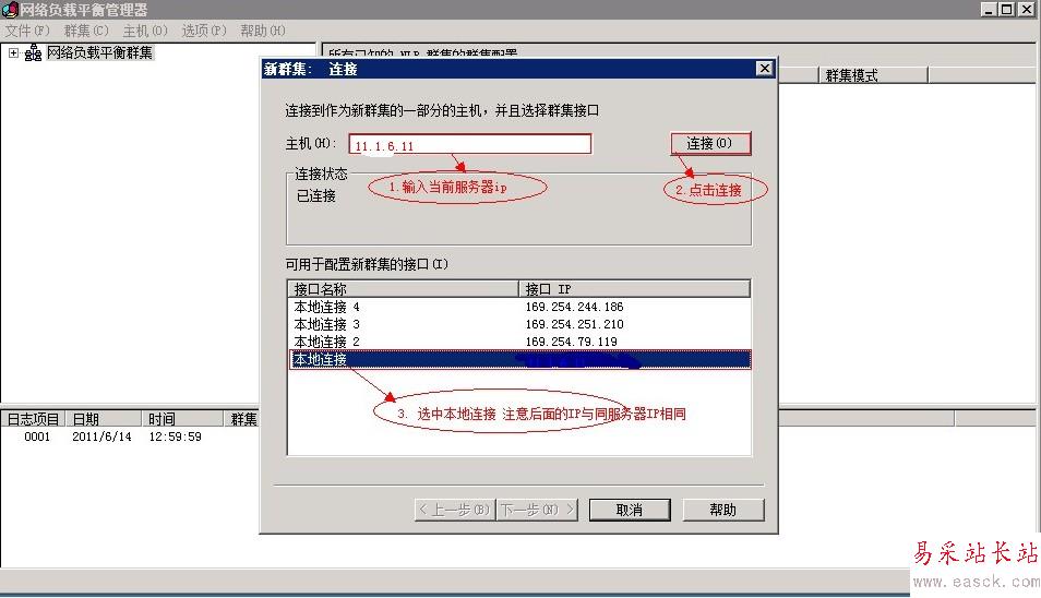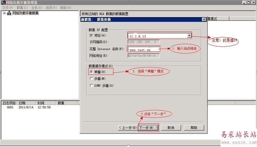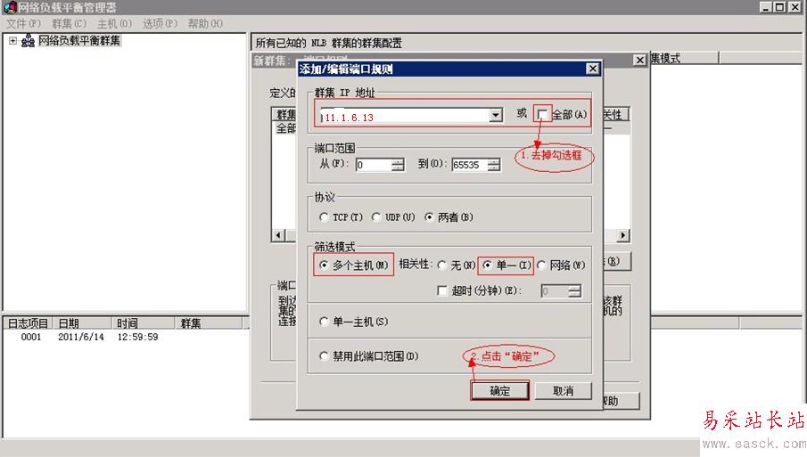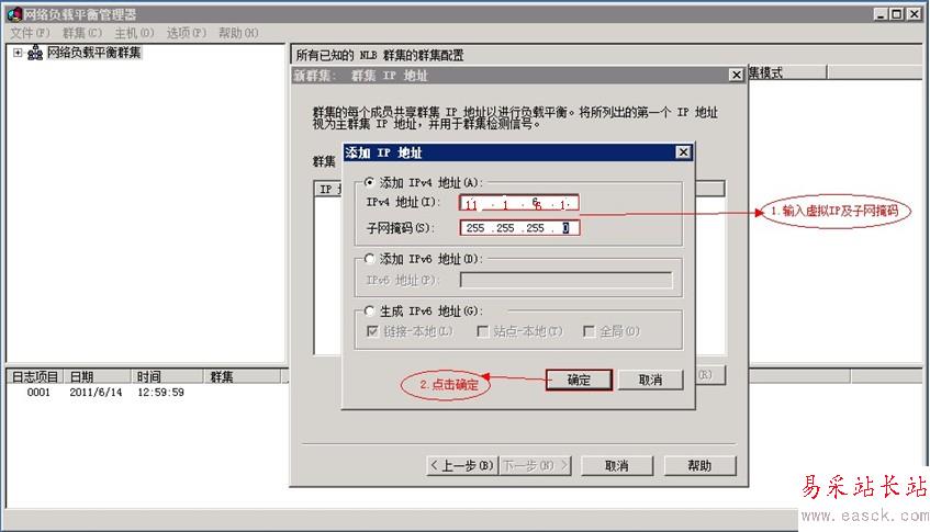 在完成以上的服務安裝后, 在開始->網絡負載平衡管理器(以11.1.6.11服務器為例)