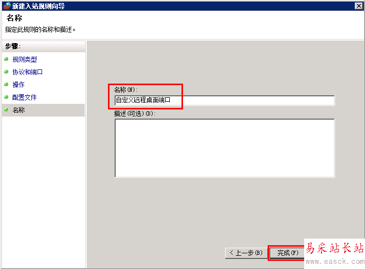 9、輸入新規(guī)則名稱,點(diǎn)擊“完成”,如下圖所示;