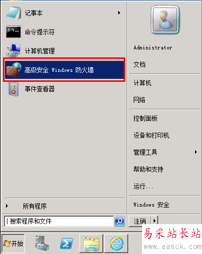 3、點(diǎn)擊“開始” “高級安全Windows防火墻”,如下圖所示;